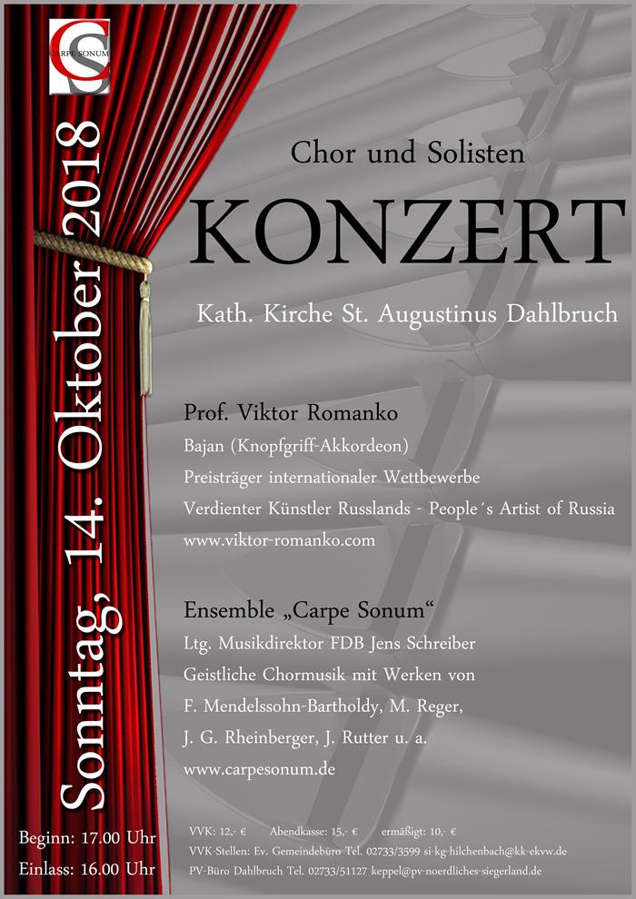 Am vergangenen Sonntag, den 23.09.2018 haben wir in Düren mit hervorragenden Leistungen die Bedingungen der Kategorie "Konzertchor" im Chor Verband NRW 2018 erfüllt.